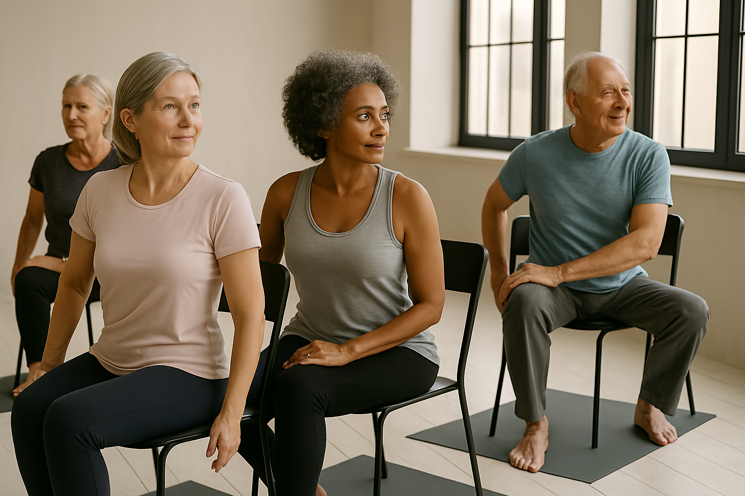 Le yoga sur chaise est une pratique qui consiste à adapter les postures de yoga traditionnelles pour les exécuter assis sur une chaise. Cette pratique est particulièrement bénéfique pour les personnes qui ont des difficultés à se tenir debout ou à s’agenouiller.